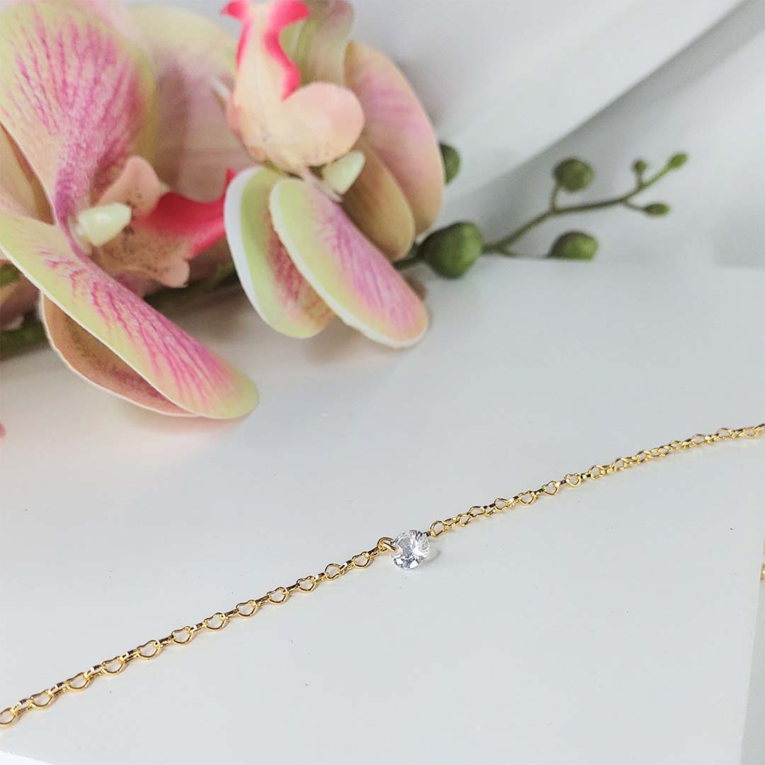 Essa tornozeleira com pingente de ponto de luz é um acessório charmoso que transmite através da sua composição e design, um ar de sofisticação e modernidade.