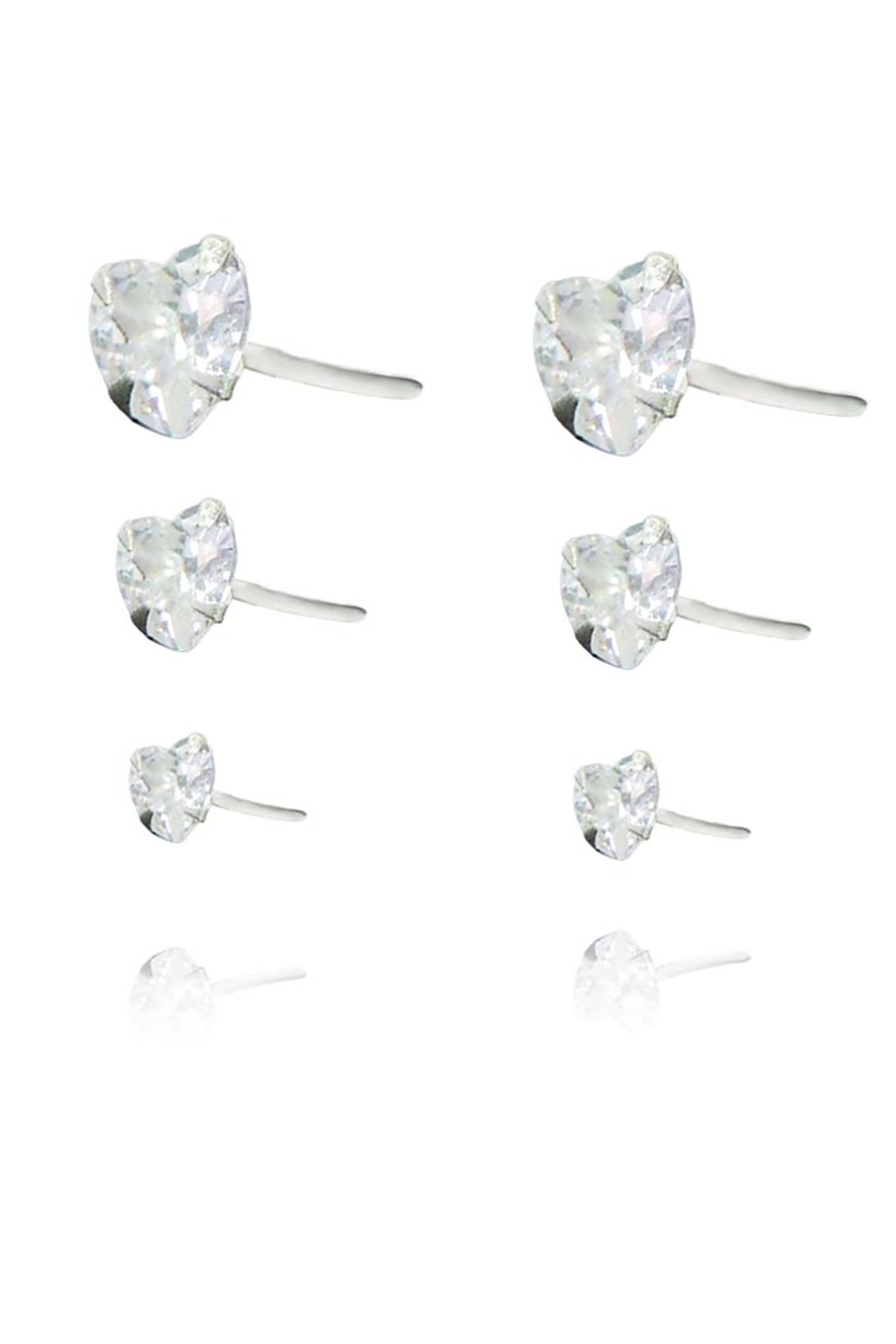 Trio De Brincos Coração Com Zircônia Em Prata 925